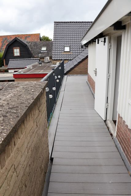 Dit huis heeft naast de begane grond nog één verdieping erboven. Met zo'n 102m2 gebruiksruimte en een totaal oppervlakte van 132m2, is dit ideaal voor 2 personen of een stel met een kind. Het bevat een balkon wat start boven de hal en doorloopt tot en met de fietsenschuur. In de fietsenschuur vind je de wasmachine en droger die vrij te gebruiken zijn.